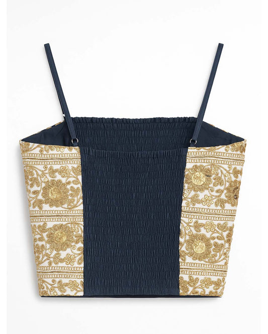 White and Gold Gota Strap Top