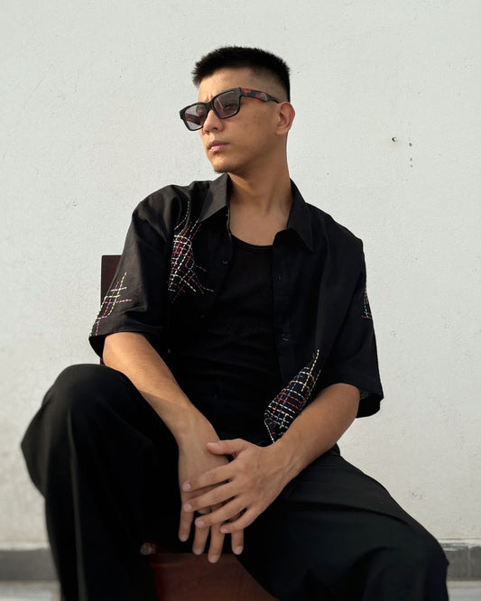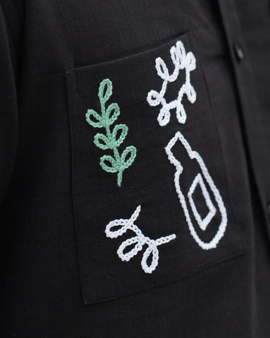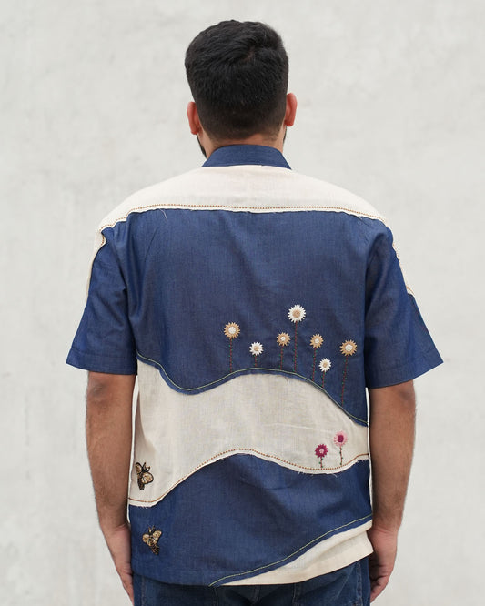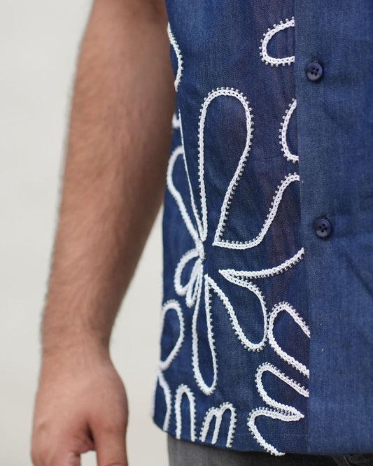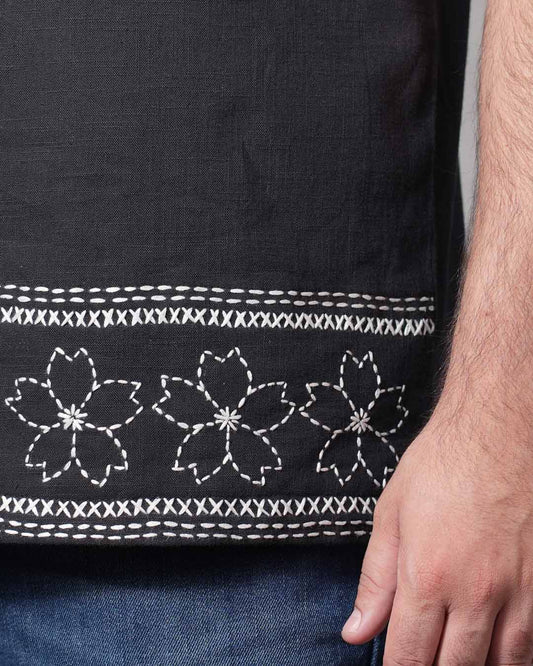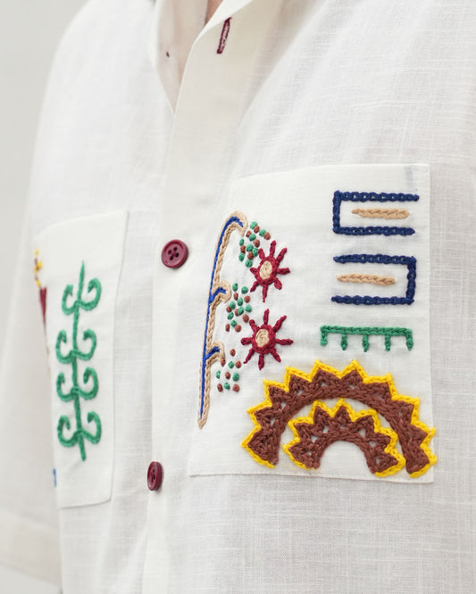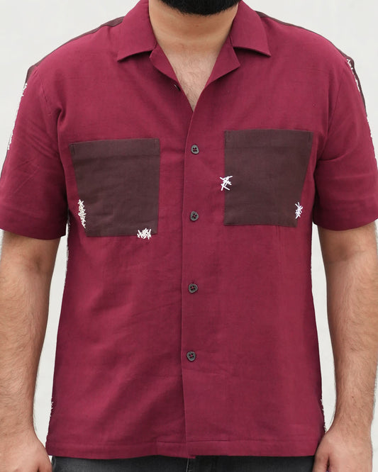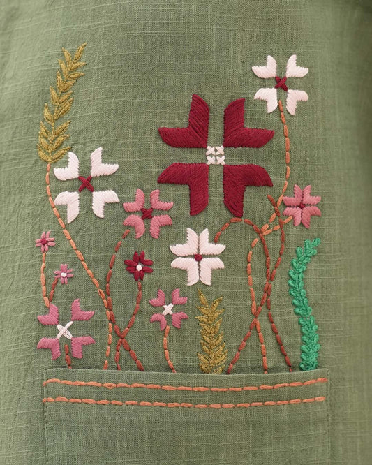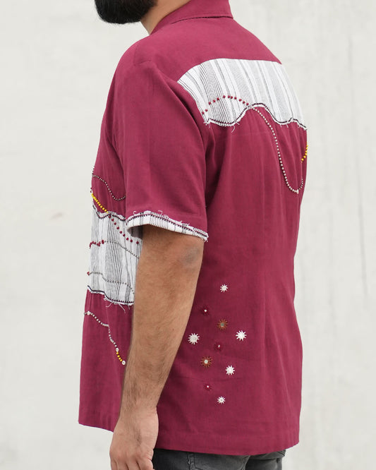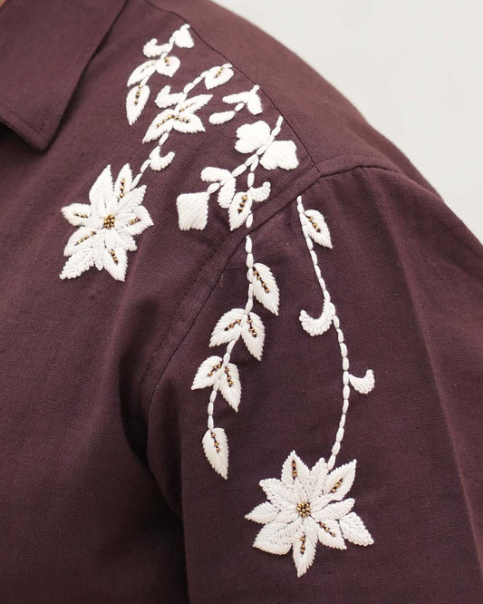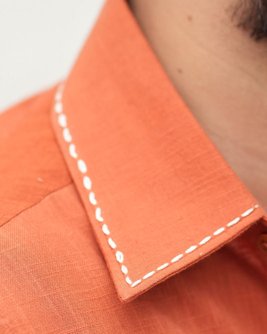 Katha Kantha Embroidery Cotton Shirt - Burnt Orange