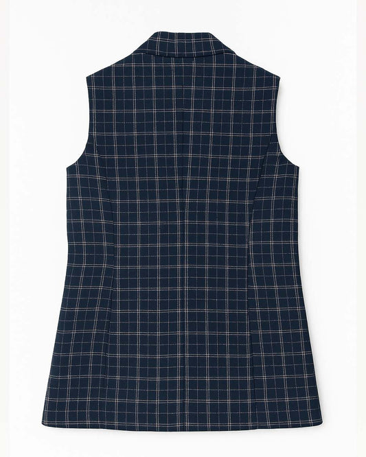 Kalamkari with Blue Checks Sleeveless Blazer